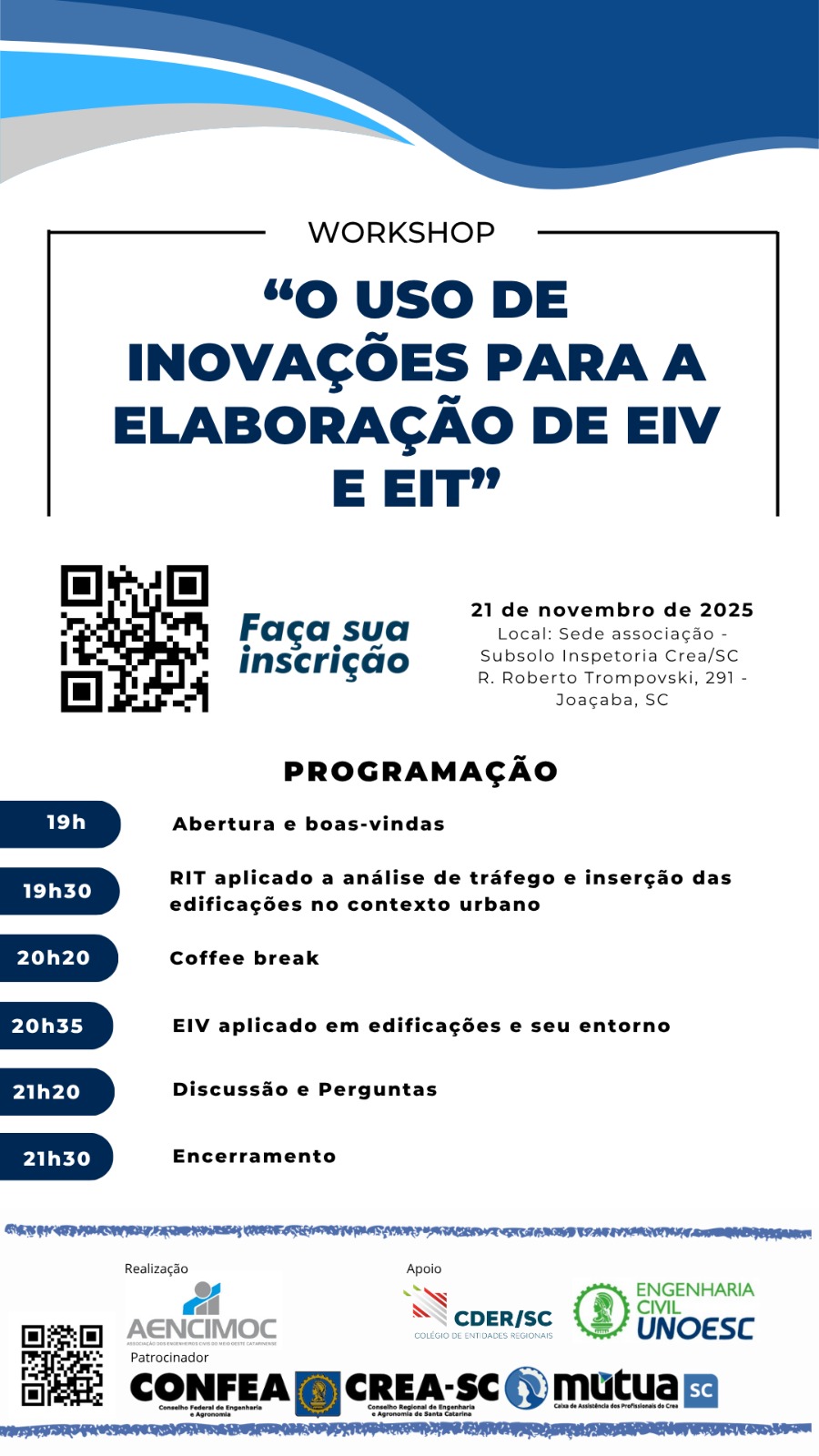 ? Local: Sede da Associação – Subsolo da Inspetoria CREA/SC